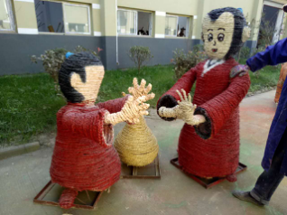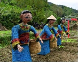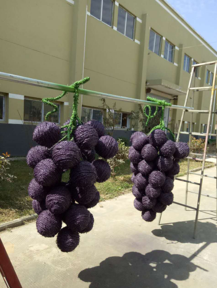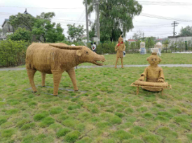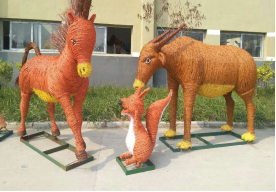 3.最后環(huán)節(jié) (上色): 在稻草工藝形象編扎完成后, 為了豐富藝品的神態(tài), 讓藝品更形象, 在油漆進(jìn)行調(diào)配后,用氣泵噴漆槍或手工描繪的形式給稻草工藝品上色。 另外,為了增長產(chǎn)品的使用壽命,我們還需要做“防水”處理,在稻草工藝品表面噴涂一層透明清漆, 通常情況下,不做防水處理的稻草工藝品在室外右以保存三個(gè)月左右,而做好防水處理的可以保存一年左右。